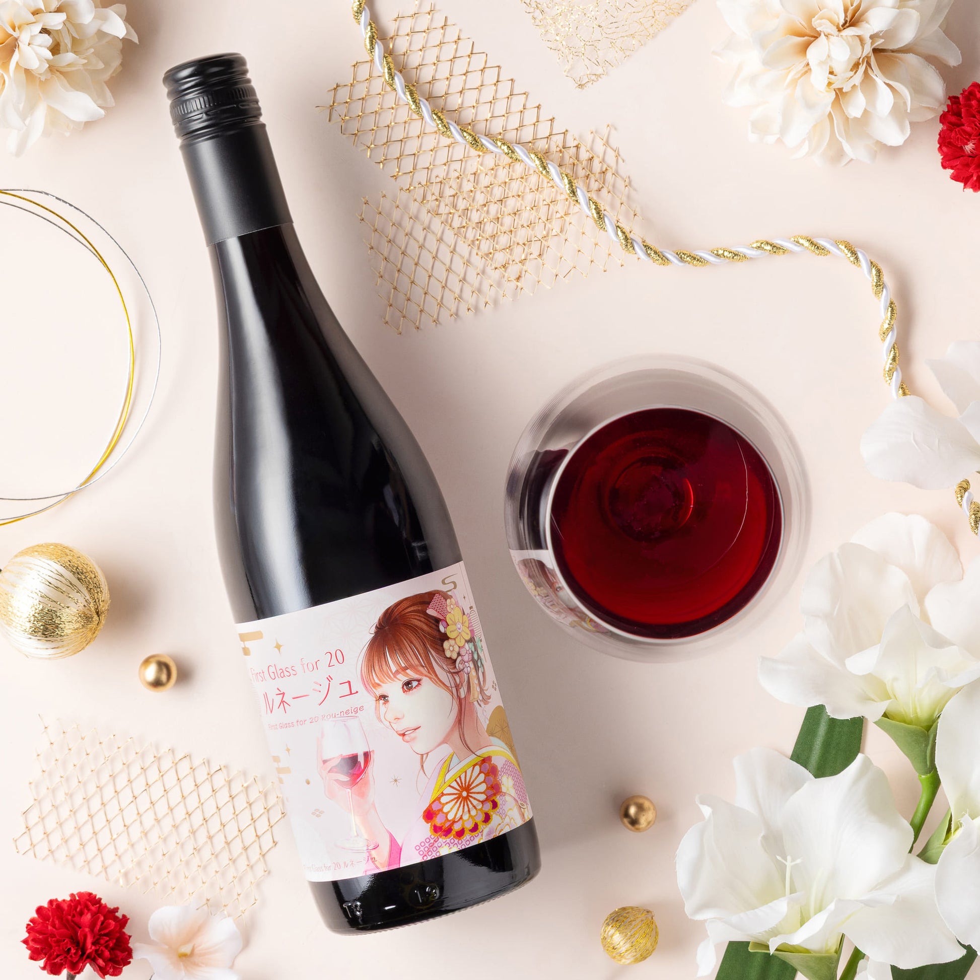 世界が注目するワイン産地・北海道。その冷涼な大地で育った赤ワイン品種「ドルンフェルダー」を使い、サクランボやイチゴのような果実味と、美しい酸味を引き出しました。ラベルには、振袖を纏った晴れ姿の女性が描かれ、二十歳の誕生日や、卒業など人生の節目を祝う贈り物にもぴったり。「紅(ルージュ)」と「雪(ネージュ)」が溶け合うような、清らかで華やかな赤ワインです。