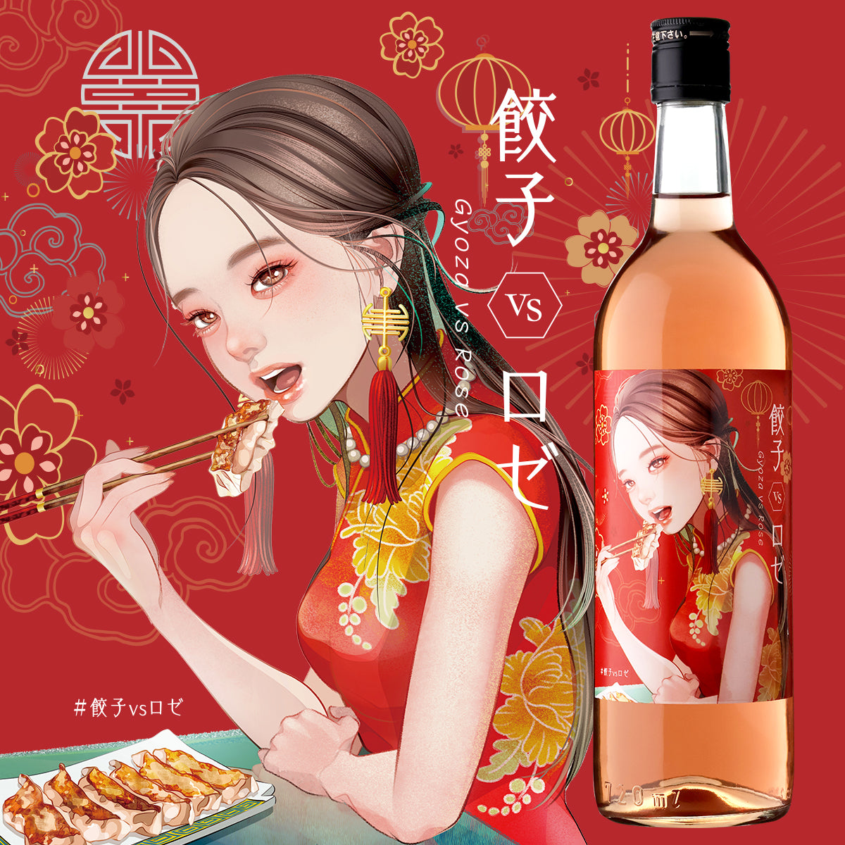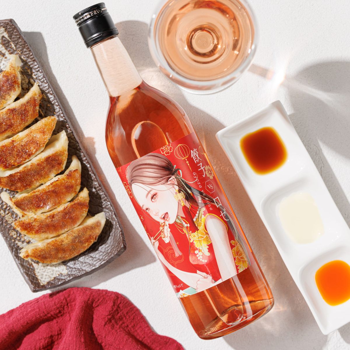 餃子に合うワインは白か、赤か、はたまたスパークリングか!?そんな議論がついに終結。結論は「冷たいロゼ」が優勝!デラウェアに黒ブドウのブラッククィーンをちょっぴりブレンドし、ドライなのにどこかフルーティなロゼは餃子との相性が段違い。餃子の脂っぽさをスッキリ流し、後味の旨みをググッと引き上げます。あっつあつの餃子と合わせて、キリッとロゼを召し上がれっ!