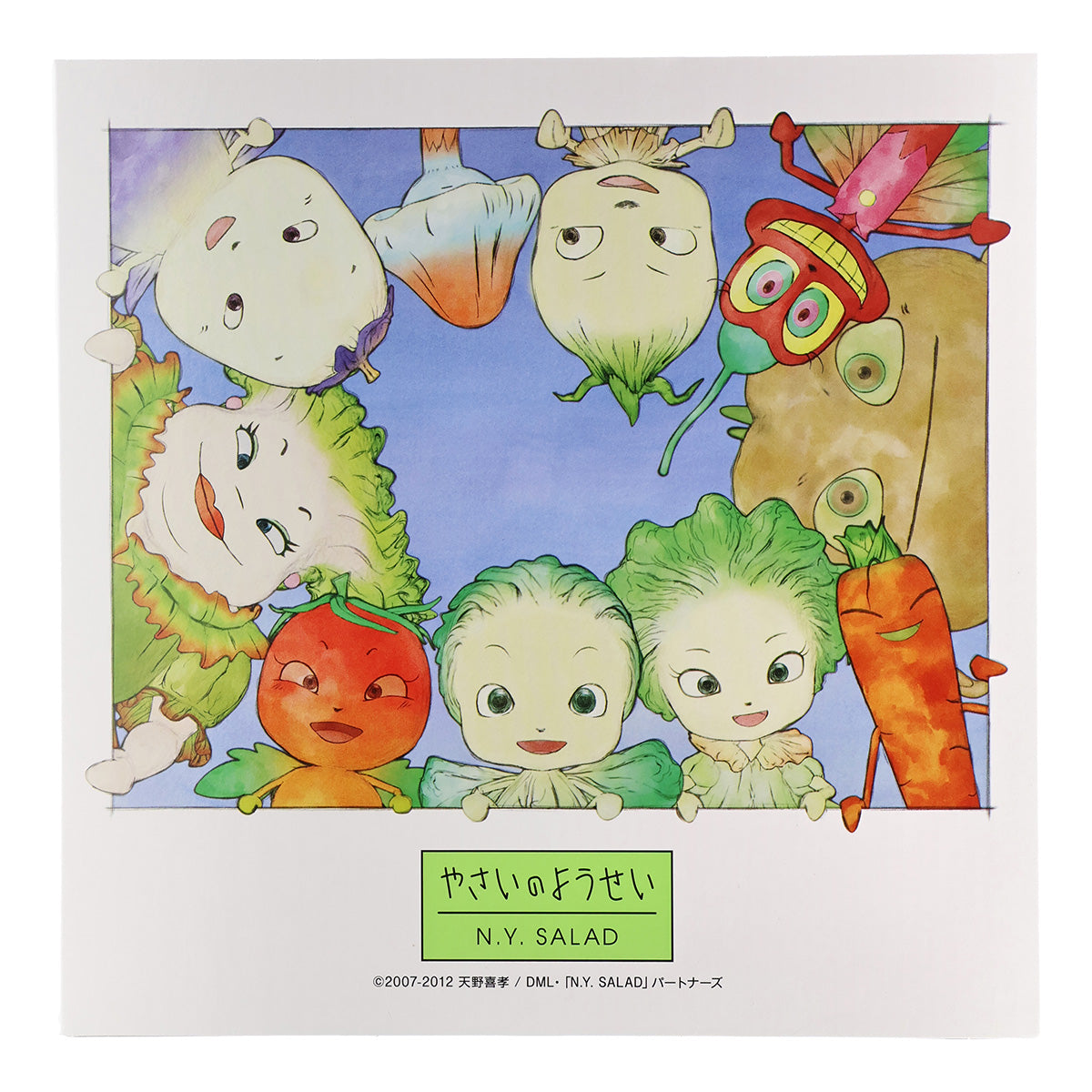 「やさいのようせい」はもともと、アーティストの天野喜孝さんが、仕事につかれたときにふとテーブルの上の野菜をスケッチしたことから生まれたそうにゃ。